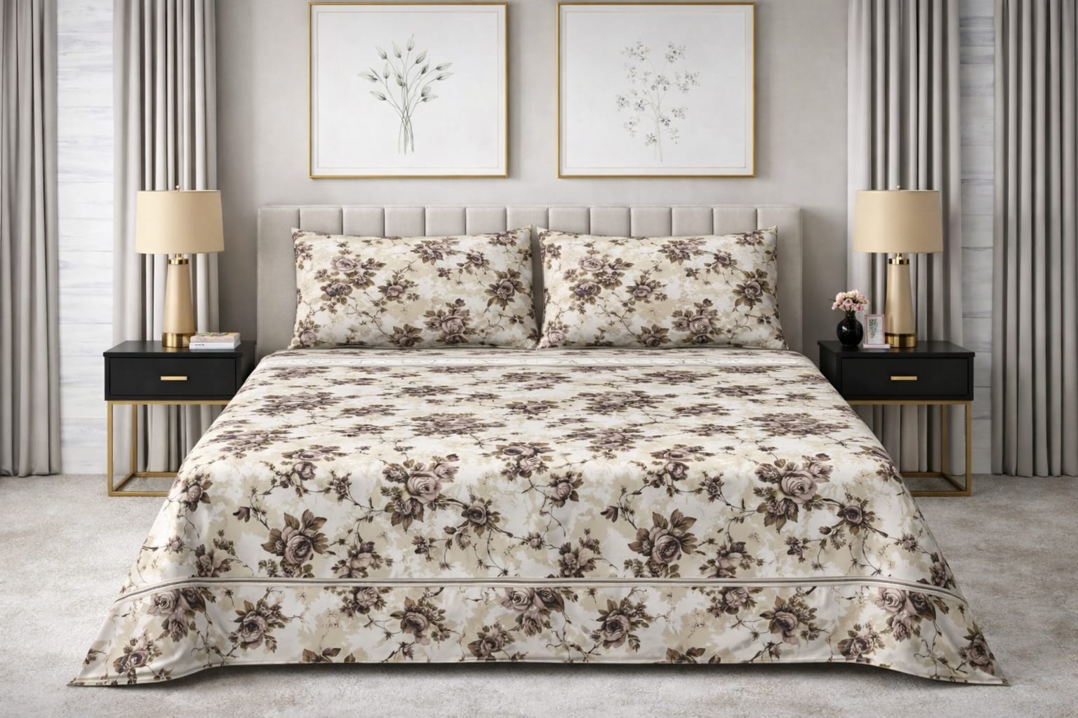 Give your bedroom a graceful and cozy feel with the Vintage Floral Cream Cotton King Size Bedsheet Set. Designed with a soothing cream background and detailed brown floral patterns, this bedsheet brings a calm, classic, and luxurious touch to your space. The subtle border enhances the overall design and gives your bed a neat and premium finish.
